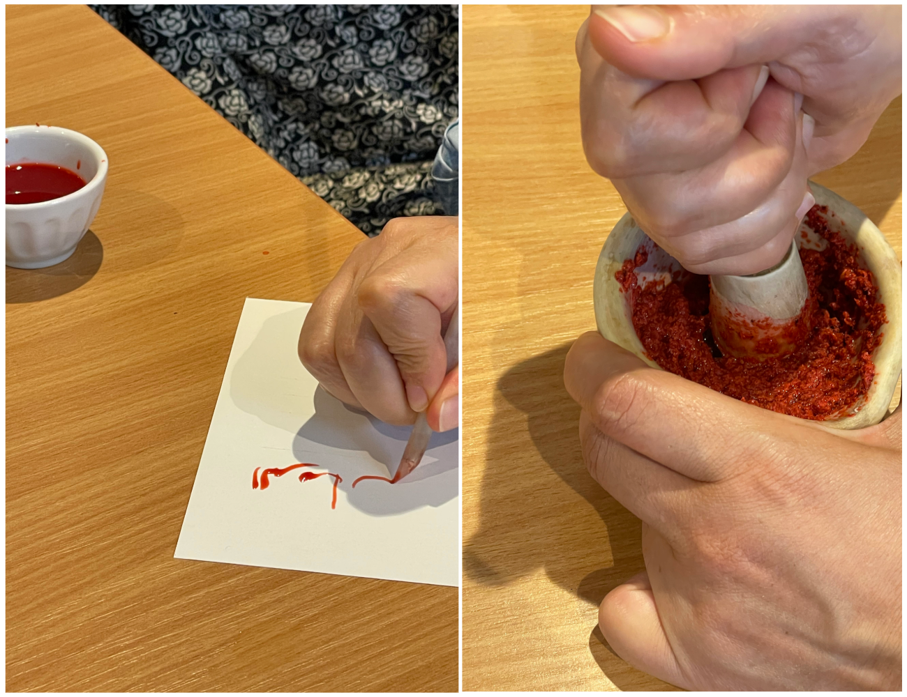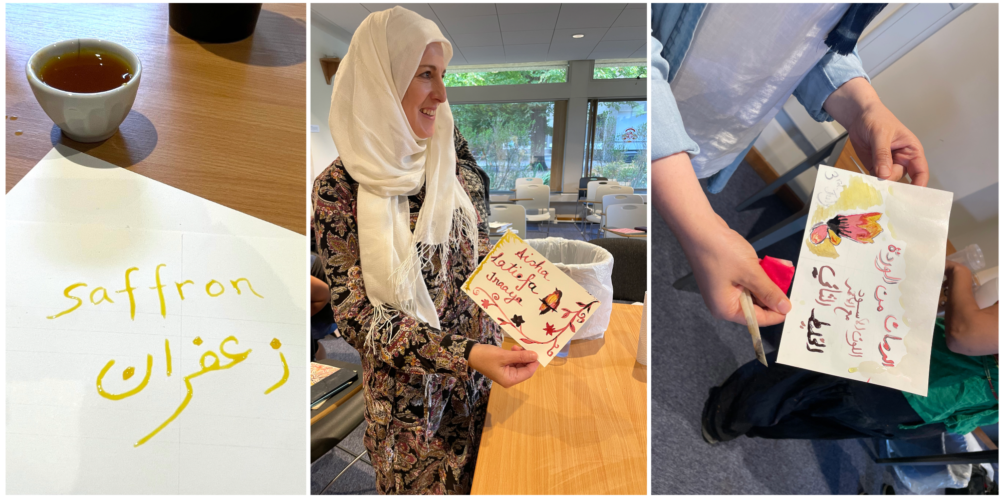 As the saffron was boiling, its aroma lingered in the room and we immersed ourselves with the inks, using quill on paper. Some of the participants were even more creative, mixing a few of the inks to see how they appear on the paper. This workshop brought to life the fact that plants were not only instrumental for human health but also harness human creativity.