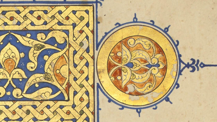 A 14th C Quran manuscript of Sultan Baybars showing the safflower pigment applied over gold. British Library Add MS 22406